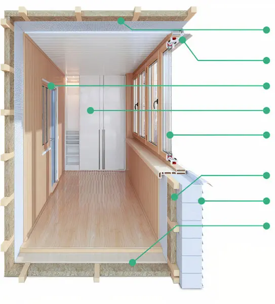 Выполненные работы: Остекление лоджии профилем REHAU Intelio 80, Утепление и отделка ламинированными панелями, Проводка электрики и установка шкафа